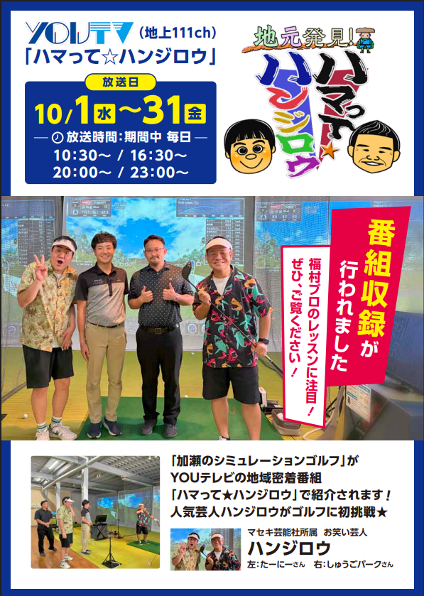 YOUテレビ番組「ハマって☆ハンジロウ」にて加瀬のシミュレーションゴルフが紹介されました!